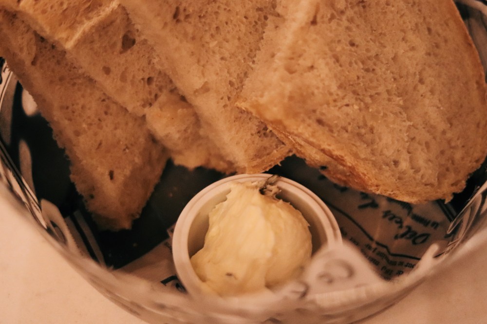 For food, they brought us some sourdough bread to start – and for free! This bread is made with a sourdough starter that has been in Fhima’s family for over 130 years. It is known as the “mother dough”, which also inspired Fhima’s local “Mother Dough Bakery”. We enjoyed the bread, but the butter really stole the show. It was a bit sweet, and was gone far too soon. The next time we stop in we’ll hopefully work up the courage to ask for more butter after we finish it at record speed.