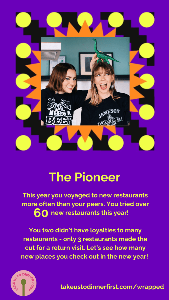 We strongly recommend that you do NOT do a restaurants wrapped on your own, as it is quite alarming to see how much you spend on going out to eat. We have always been saying that you have more money to spend if you don’t budget, and we want to keep it that way to live in peaceful bliss and ignorance. Cheers to a great 2023, and we’ll continue to update you all on our food adventures in the next season.